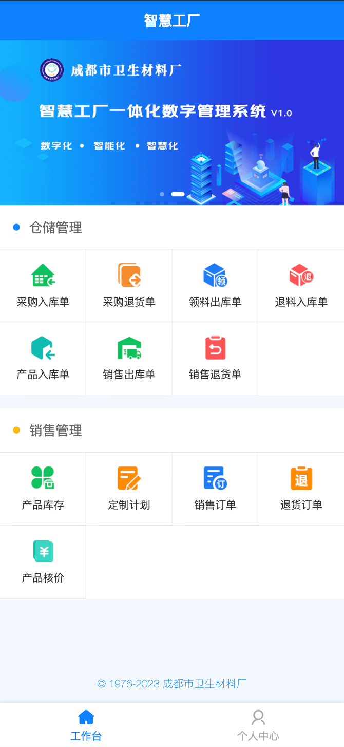 【成都市衛(wèi)生材料廠(chǎng)】智慧工廠(chǎng)一體化數(shù)字管理系統(tǒng)V1.0